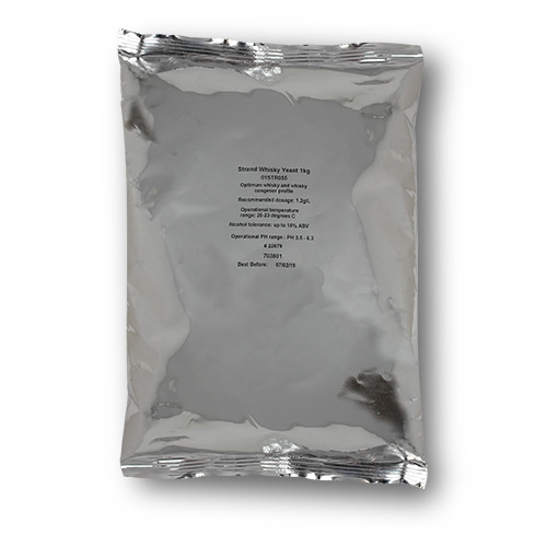 Opis produktu - specjalistyczny szczep drożdży destylacyjnych whisky zmieszany z enzymem glukoamylazy do produkcji spirytusu whisky z substratów zbożowych. Zalecane dawkowanie: 1,2 g / L. Zakres temperatur pracy: 20-33°C. Tolerancja alkoholu: do 15%. Zakres działania pH: pH 3,5-6,0. Drożdże Whisky to specjalistyczny aktywny suszony szczep Saccharomyces cerevisiae, który nadaje optymalny profil kongenerowy dla whisky. Odmiana ta szczególnie nadaje się do produkcji whisky zbożowej z pszenicy lub kukurydzy. Dzięki dobrej tolerancji na etanol do 15%, szczep ten wytwarza związki kongenerowe drożdży (produkt uboczny fermentacji), które wzmacniają profil smaku i aromatu whisky, dzięki czemu jest to idealny szczep do produkcji wszelkiego rodzaju wódki. Drożdże Whisky można rozbić bezpośrednio na zalecaną dawkę 1 g (optymalnie 1,2 g) na litr brzeczki. Szybkość skoku można regulować w zależności od procesu (wymagany ABV, okres fermentacji itp.). Alternatywnie, drożdże można ponownie uwodnić w 10-krotnej masie wody uprzednio doprowadzonej do między 34 - 38 ° C i mieszanej przez 5-10 minut przed przeniesieniem do naczynia fermentacyjnego.