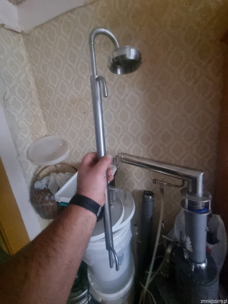 Keg z płaszczem wodnym 50 litrów plus bufor wykonany przez Spawacza, kolumna aabratek wykonana przez Akasa plus chłodnica od Kuli. Na kegu jest sms i wejście na normalny fitting bo można podłączyć kolumnę albo potstila z końcówka fitting, spust ma fi50. Grzanie to siła 3x2000v można przerobić na 220v